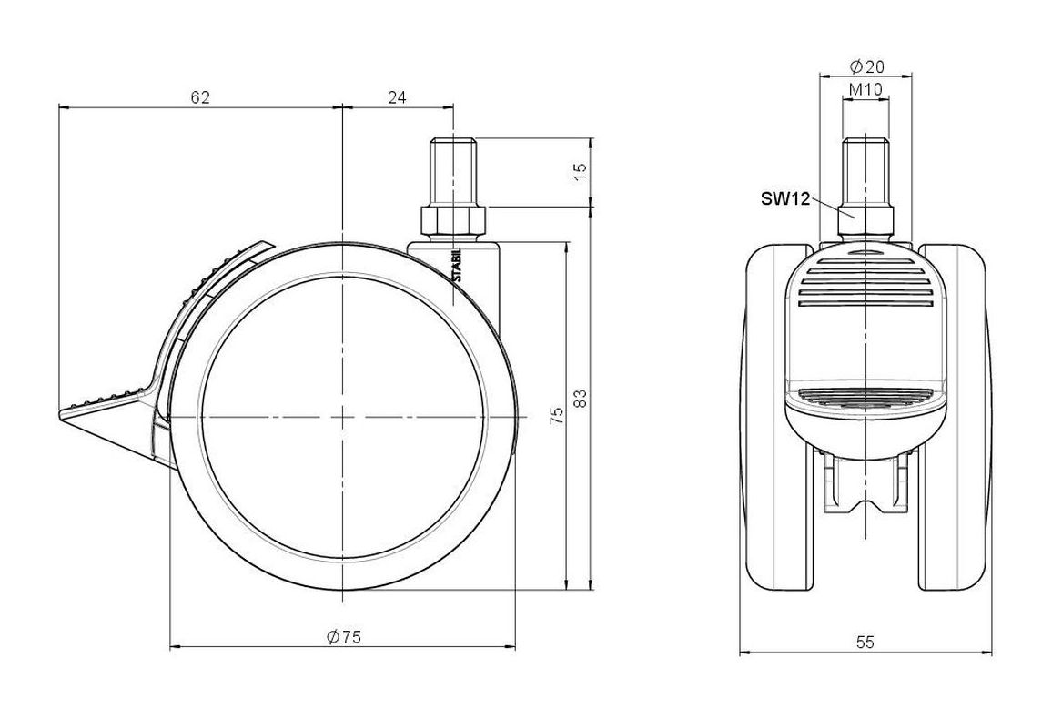 Der klassische Radfeststeller stellt sicher, dass die Rolle und das Möbelstück nicht davon laufen.